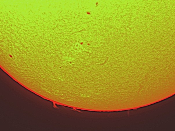 撮影場所:東京23区マンションのバルコニー 撮影機材:Hα太陽望遠鏡 LS60THa B1200、ZWO ASI 294MC