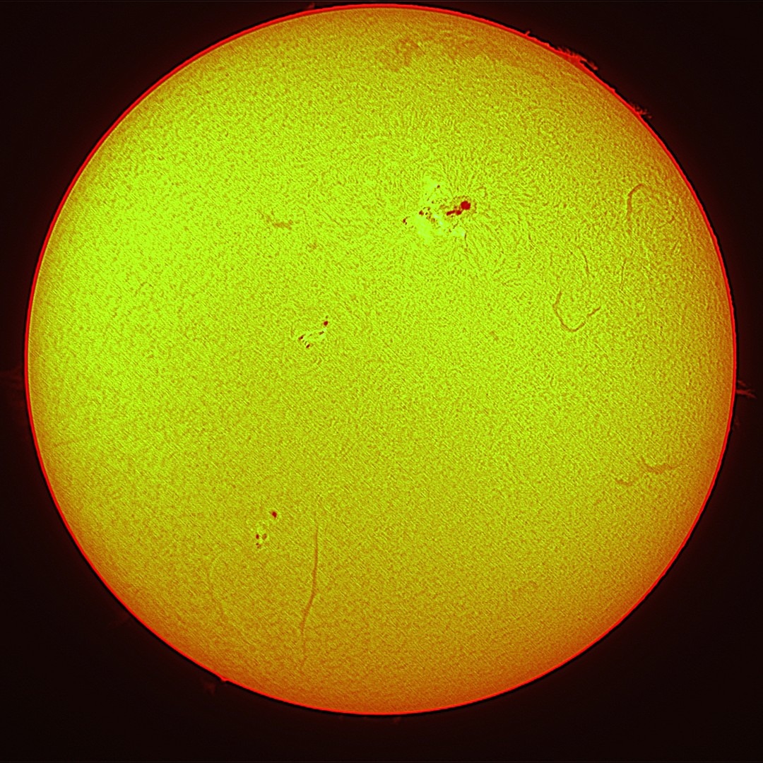 撮影場所:東京23区マンションのバルコニー 撮影機材:Hα太陽望遠鏡 LS60THa B1200、ZWO ASI 294MC